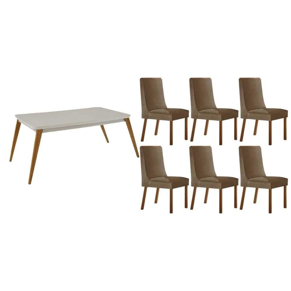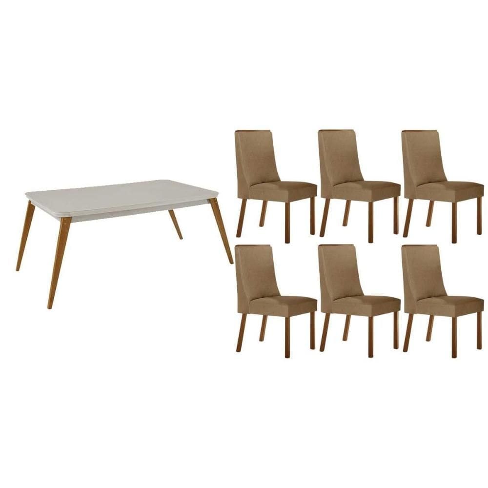mesa de jantar de madeira com vidro e 6 cadeiras