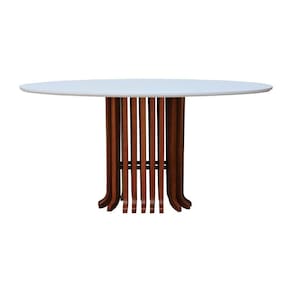 - Materiais: Produzidas sua base em madeira maciça envernizada com arco em aço carbono com pintura epóxi, tampo em MDF laqueado ou MDF Laminado envernizado