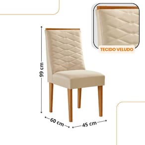 A Mesa Diane, produzida em 100 MDF com tampo canto copo e vidro, e a escolha ideal para transformar refeicoes em experiencias memoraveis. Seu design elegante combina perfeitamente estilo e resistencia, garantindo durabilidade sem abrir mao da estetica. A base robusta, com extremidades em acabamento Naturalle, e um verdadeiro destaque visual, agregando charme e sofisticacao ao ambiente. As Cadeiras Safira sao totalmente estofadas, oferecendo conforto e um toque de charme com seus elegantes bordados na parte frontal e traseira. Os detalhes sofisticados valorizam ainda mais seu visual, tornando-a perfeita para ambientes modernos e elegantes. As alcas facilitam o manuseio, tornando o dia a dia mais pratico ao movimentar as cadeiras.