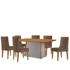 Mesa De Jantar Diane 180cm Tampo Mdf Lam 6 Cadeiras Lisboa Moderna Veludo Capuccino Off White