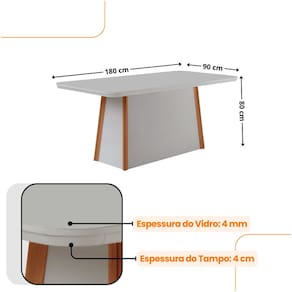 Mesa de Jantar Diane 180cm Tampo MDF Vidro com 6 Cadeiras Isadora Moderna Mobília - Bege