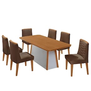 A Mesa Diane, produzida em 100 MDF, e a escolha ideal para transformar refeicoes em experiencias memoraveis. Seu design elegante combina perfeitamente estilo e resistencia, garantindo durabilidade sem abrir mao da estetica. A base robusta, com extremidades em acabamento Naturalle, e um verdadeiro destaque visual, agregando charme e sofisticacao ao ambiente. Para complementar, as Cadeiras Eloise MDF oferecem um toque de conforto. Totalmente estofadas, elas se destacam pelos bordados delicados e acabamentos sofisticados, ideais para compor ambientes modernos e elegantes.