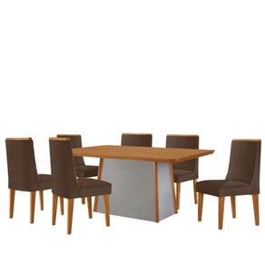 Mesa De Jantar Diane 180cm Tampo Mdf Lam 6 Cadeiras Lisboa Moderna Veludo Marrom Off White