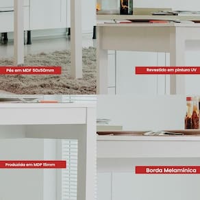 - Mesa produzida em MDP 15mm com revestimento em pintura UV.