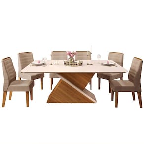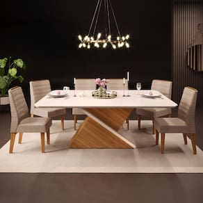 Moderna e com estilo, a Mesa de Jantar Campinas combinará lindamente com a decoração da sua casa. Ela é confeccionada em MDP e MDF de altíssimo padrão, o seu acabamento em pintura UV possibilita maior durabilidade ao produto e a tampa em vidro dá maior leveza ao ambiente. E mais, os detalhes exclusivos dão um tom primoroso e sofisticado. Já as Cadeiras Moema possuem um design diferenciado e uma coloração exclusiva, ela é produzida com material de altíssima qualidade. O assento e o encosto são estofados com um agradável tecido de cores atuais e de fácil combinação. A linha de produtos da DJ Móveis é perfeita para o seu lar. Adquira agora mesmo!