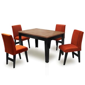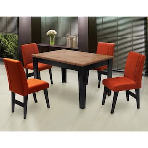 Mesa de Jantar Dobuê Martinelli 80x136x90cm com 4 Cadeiras Pádua com Assento e Encosto Estofados - Cedro/Terracota/Preto