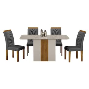 Mesa de Jantar Doha 120x80 Off White Decor Off com 4 Cadeiras Freijó Joli Chumbo – Leifer Móveis