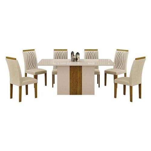 Mesa de Jantar Doha 160x80 Reto Off White Freijó Decor Off com 6 Cadeiras Freijó Joli Palha Leifer Móveis