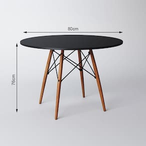 Mesa De Jantar Eames 80cm Tampo Redondo Preto Base De Madeira A Mesa Eiffel é a escolha ideal para deixar sua casa muito mais bonita e renovada. Essa mesa tem em sua estrutura materiais de altíssima qualidade, que proporciona muito mais resistência, mesmo com o passar dos anos. Ela tem formato redondo e possui espação para 4 lugares, o que é ideal para um jantar em famÍ;lia. A mesa é versátil e combina com vários tipos de decoraçãão, o que dá mais praticidade em casa. Tipo: Mesa Modelo: Eiffel Cor: Tampo Redondo Preto DIMENSÕES do Produto - Altura: 80cm - Di âmetro: 80cm CaracterÍ;sticas - Base: Madeira com ferro entrelaçado preto - Tampo de Madeira (mdp) com espessura de 25mm - Necessita Montagem? Parcialmente (Produto Entregue Montado Parcialmente)Mesa de Jantar Eames 80cm Tampo Redondo Preto Base de Madeira