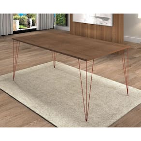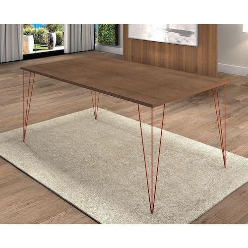 Mesa De Jantar Elen 140x80cm Tampo Amêndoa Com Base CobreA sua cozinha ou sala de jantar só está completa com uma boa mesa para realizar as grandes refeições em família. E se você busca um móvel de qualidade e com combinação de cores, o modelo Elen é para você! De tampo retangular e estrutura em ferro, ela acomoda os seus convidados enquanto deixa o momento mais intimista. Mas não é só a sua rotina que ganha uma bela aliada, ela também complementa a decoração com sofisticação, além de ser harmonizável com cadeiras da mesma cor ou coloridas, seja para garantir um visual monocromático ou voltado para algo arrojado. Ah, a peça não acompanha cadeiras e você deve adquiri-las separadamente para deixar o uso completo.Informações importantes:- Os objetos que ambientam as fotos não acompanham o produto.- Verifique as dimensões do produto e certifique-se que o percurso que ele fará até o local de uso permite sua passagem.- Favor verificar se os pés estão dentro do forro inferior do produto.- Fique atento, nossas cores podem sofrer alterações dependendo do seu monitor.Especificações:Cor: AmêndoaBase: CobreInstruções/Cuidados:Limpar com Pano Levemente UmedecidoConteúdo da Embalagem 1 Mesa (Cadeiras não acompanham o produto) - Entregue em: 2 VolumesModelo ElenMaterial Estrutura em Ferro; Tampo em MDF 20 mm; Pés Fixos em Ferro; Acabamento em Semi-BrilhoDescrição do Tamanho - Altura: 76 cm - Largura: 140 cm - Profundidade: 80 cmFormato RetangularTipo de pé FixoMesa de Jantar Elen 140x80cm Tampo AmÃndoa com Base Cobre
