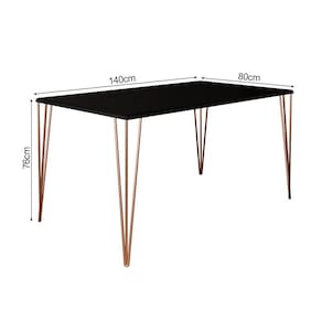 Mesa De Jantar Elen 140x80cm Tampo Preto Com Base Cobre