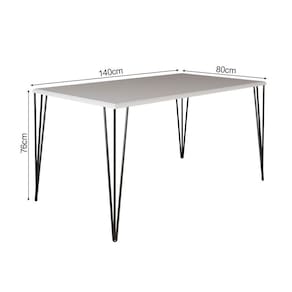 Mesa De Jantar Elen Retangular Tampo De Madeira 140x80cm BrancoA sua cozinha ou sala de jantar só está completa com uma boa mesa para realizar as grandes as refeições em família. E se você busca um móvel de qualidade e com uma clássica combinação de cores, o modelo Elen é para você! De tampo retangular e estrutura em ferro, ela acomoda os seus convidados enquanto deixa o momento mais intimista. Mas não é só a sua rotina que ganha uma bela aliada: ela também complementa a decoração com sofisticação, além de ser harmonizável com cadeiras da mesma cor ou coloridas, seja para garantir um visual monocromático ou voltado para algo arrojado. Ah, a peça não acompanha cadeiras e você deve adquiri-las separadamente para deixar o uso completo. Informações importantes:- Os objetos que ambientam as fotos não acompanham o produto.- Verifique as dimensões do produto e certifique-se que o percurso que ele fará até o local de uso permite sua passagem.- Favor verificar se os pés estão dentro do forro inferior do produto.- Fique atento, nossas cores podem sofrer alterações dependendo do seu monitor. Especicações:Cor BrancoInstruções/Cuidados Limpar com Pano Levemente UmedecidoConteúdo da Embalagem 1 Mesa (Cadeiras não acompanham o produto) - Entregue em: 2 VolumesModelo ElenMaterial Estrutura em Ferro; Tampo em MDF 20 mm; Pés Fixos em Ferro; Acabamento em Semi-BrilhoDescrição do Tamanho Altura: 76 cm Largura: 140 cm Profundidade: 80 cm Formato RetangularTipo de pé FixoMesa de Jantar Elen Retangular Tampo de Madeira 140x80cm Branco