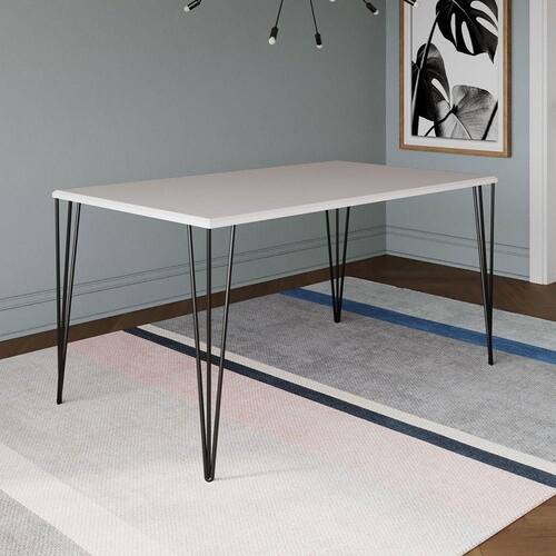 Mesa De Jantar Elen Retangular Tampo De Madeira 150x90cm Branco - Branco