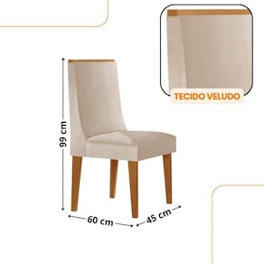 Mesa De Jantar Eloise 180cm Tampo Mdf 6 Cadeiras Lisboa Veludo Creme/