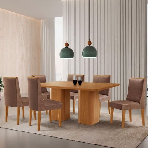 Mesa De Jantar Eloise 180cm Tampo Mdf 6 Cadeiras Lisboa Tork/