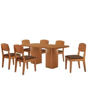 Mesa De Jantar Eloise 180cm Tampo Mdf 6 Cadeiras Moderna Veludo Marrom/naturalle Conjunto Sala de Jantar Mesa Eloise e Cadeira Copper A Mesa Eloise e uma peca de design sofisticado, com tampo em MDF canto copo, que adiciona elegancia e modernidade ao ambiente. Seu grande destaque esta nas bases com formato de torres, que trazem um visual marcante. A Cadeira Copper combina design contemporaneo e conforto, com encosto em MDF moldado que oferece suporte ergonomico ideal. Seu estofado acolhedor garante um assento confortavel, enquanto o acabamento refinado e detalhes sofisticados valorizam seu visual, tornando-a perfeita para ambientes modernos e elegantes.