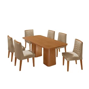 Mesa De Jantar Eloise 180cm Tampo MDF Com 6 Cadeira Moderna Turim Naturale - Bege