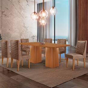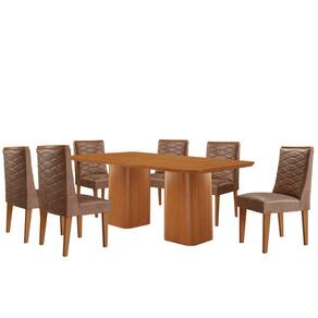 Mesa de Jantar Eloise 180cm Tampo MDF Laminado com 6 Cadeiras Safira - Marrom