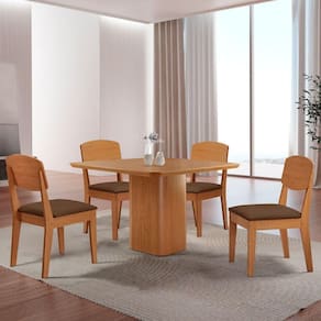 Mesa De Jantar Eloise 90cm Tampo Mdf 4 Cadeiras Copper Veludo Marrom/naturalle Conjunto Sala de Jantar Mesa Eloise e Cadeira Copper A Mesa Eloise e uma peca de design sofisticado, com tampo em MDF canto copo, que adiciona elegancia e modernidade ao ambiente. Seu grande destaque esta nas bases com formato de torres, que trazem um visual marcante. A Cadeira Copper combina design contemporaneo e conforto, com encosto em MDF moldado que oferece suporte ergonomico ideal. Seu estofado acolhedor garante um assento confortavel, enquanto o acabamento refinado e detalhes sofisticados valorizam seu visual, tornando-a perfeita para ambientes modernos e elegantes.