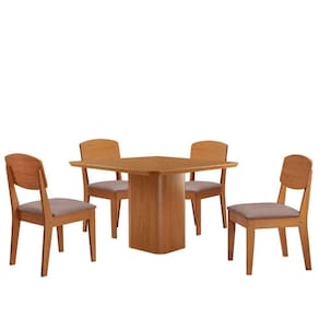Mesa De Jantar Eloise 90cm Tampo Mdf 4 Cadeiras Copper Linho Capuccino/ Conjunto Sala de Jantar Mesa Eloise e Cadeira Copper A Mesa Eloise e uma peca de design sofisticado, com tampo em MDF canto copo, que adiciona elegancia e modernidade ao ambiente. Seu grande destaque esta nas bases com formato de torres, que trazem um visual marcante. A Cadeira Copper combina design contemporaneo e conforto, com encosto em MDF moldado que oferece suporte ergonomico ideal. Seu estofado acolhedor garante um assento confortavel, enquanto o acabamento refinado e detalhes sofisticados valorizam seu visual, tornando-a perfeita para ambientes modernos e elegantes.