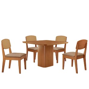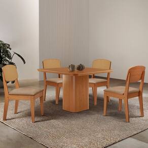 Mesa de Jantar Eloise 90cm Tampo MDF Laminado com 4 Cadeiras Copper Premium Moderna Mobília - Bege Claro