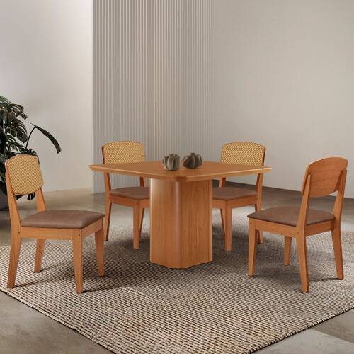 Mesa de Jantar Eloise 90cm Tampo MDF Laminado com 4 Cadeiras Copper Premium Moderna Mobília - Marrom