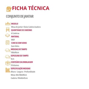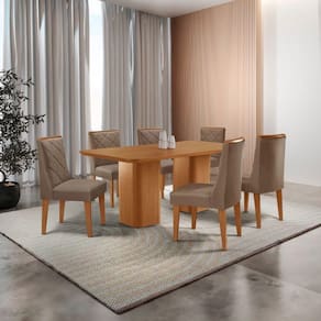 O Conjunto de Mesa Eloise com as Cadeiras Isadora traz sofisticacao e conforto para seu lar. A mesa se destaca pela base, que agrega elegancia ao ambiente, enquanto as Cadeiras Melissa, com assentos e encostos estofados, oferecem conforto excepcional. Os bordados sofisticados e as alcas no encosto adicionam um toque de distincao e charme. Ideal para quem busca combinar estilo e funcionalidade, este conjunto transforma qualquer espaco em um ambiente acolhedor e refinado.
