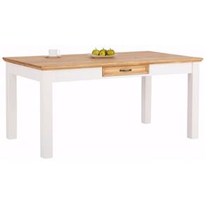 Mesa de Jantar 160x90 Com Acabamento Acetinado Em Cera Natural e Branco Lavado Com Gaveta para Guardar Seu Apoiador de Pratos do Dia a Dia /coleção England