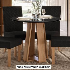 Base em MDP 25 mm na cor mel Tampo redondo em MDF 18 mm com vidro sobreposto Design moderno e acabamento refinado Ideal para até 4 lugares