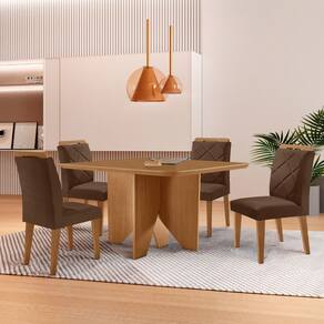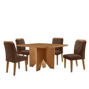 Mesa de Jantar Evora 90cm MDF Canto copo e com 4 Cadeiras Melissa - Marrom Chocolate