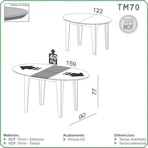 Itens Inclusos: 1 Mesa de Jantar (TM70)