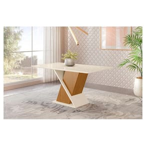 Mesa de Jantar Fiorella 160 cm Tampo Reto com Vidro Nature Off White – Henn