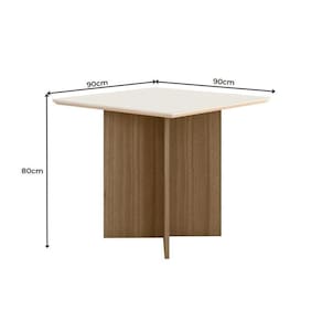 Mesa De Jantar Helo 90cm Carvalho/off White - Poliman Com design contemporâneo a Mesa de Jantar Helô é perfeita para completar seu ambiente. Versátil e única, sua base é formada por painés robustos e charmosos que com certeza vão dar nova dinâmica para seu ambiente. Tampo de 90x90cm em MDP de 25mm, chanfrado, pintado em UV aumentando a durabilidade e facilitando a higienização do produto, além de trazer sofisticação. Os pés possuem sapatas plásticas que oferencem aderência e estabilidade, além de preservar a madeira que não fica em contato direto com o chão. Acabamento em pintura UV, ideal para 4 lugares, disponível em padrões amadeirados com perfeita combinação com os mais variados ambientes. Produto ecologicamente correto com embalagens preparadas afim de evitar e permitir que o produto chegue em perfeito estado em sua casa. Cadeiras não acompanham o produto. Qualidade que só a Poliman oferece em seus produtos.