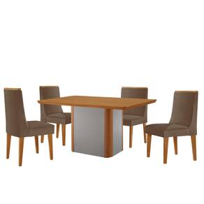 Mesa de Jantar Isadora 120cm Tampo Canto Copo MDF Laminado com 4 Cadeiras Lisboa - Bege Médio