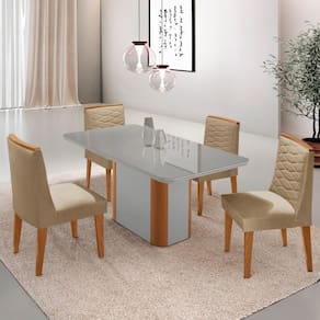 A mesa Isadora, com tampo Canto Copo e Vidro, garante segurança e durabilidade, enquanto sua base deslumbrante, com detalhe especial na sua angulação arredondada Naturalle. As Cadeiras Eloise, totalmente estofadas e com delicados bordados, oferecem o máximo de conforto sem abrir mão do estilo. As alças trazem um visual moderno e diferenciado, complementando o conjunto com sofisticação.