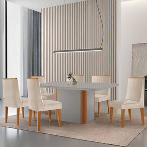 Mesa de Jantar Isadora 180cm Tampo MDF Vidro com 6 Cadeiras Lisboa - Off White