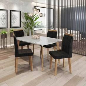 Perfeita para promover sofisticação e modernidade ao seu ambiente a Mesa de Jantar Jade com 4 Cadeiras Diamante – RV Móveis irá deixar a sua sala de jantar ainda mais charmosa. A mesa possui tampo com vidro o que transmite ainda mais requinte e suas cadeiras estofadas promovem maior conforto para a realização de suas refeições.Dimensões do Produto Montado-Mesa:Altura: 78cmLargura: 120cmProfundidade: 90cmDimensões do Produto Montado-Cadeira:Altura: 106cmLargura: 47cmProfundidade: 58cmObservações:– Pés em madeira maciça.– Tampo da mesa MDF 30mm, semi curvo com cantos arredondados e vidro.– Suporte para fixação dos pés da mesa em metal.– Espaldar da cadeira em madeira maciça.– Cadeiras estofadas.– Sapata antiumidade.– Pintura Ultravioleta com acabamento brilho.Marca: RV MóveisModelo: DiamanteReferência: CP2804MS4701WATENÇÃO: Não nos responsabilizamos pela montagem deste produto. Aconselhamos a contratação de um profissional.