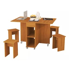 Mesa De Jantar Jade Dobravél Apartamento Lazer 120 Cm -100% MDF -Multifuncional - Nature - Marrom Cacau