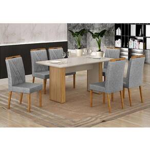 Mesa de Jantar Júlia 160x80cm Cinamomo Off White com 6 Cadeiras Lara Linho Prata - Valdemóveis