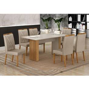 Mesa de Jantar Júlia 160x80cm Cinamomo Off White com 6 Cadeiras Lara Veludo Bege - Valdemóveis