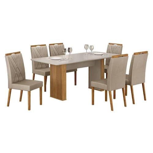 Mesa de Jantar Júlia 180x90cm Cinamomo Off White com 6 Cadeiras Lara Veludo Bege - Valdemóveis
