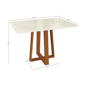 Cor: Off White | Matéria-prima: Eucalipto | Sistema de montagem: Parafuso Philips | Tampo: Vidro ou madeira | Altura: 80 | Largura: 120 | Ambiente indicado: Sala de jantar/cozinha | Forma: Retangular | Material da tampa: MDP BP | Requer montagem: Sim