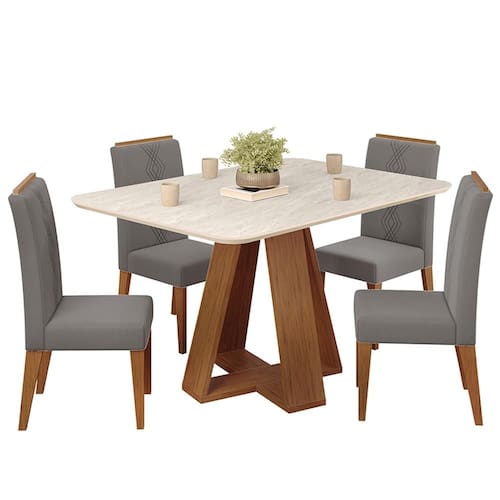 Mesa Kiara e Cadeiras de Jantar Yasmin, conjunto ideal para unir praticidade, conforto e estilo em seu ambiente.