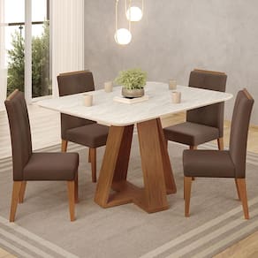 Mesa De Jantar Kiara E 4 Cadeiras Yasmin DJ MOVEIS - Branco | Marrom | Off White | Amendoa