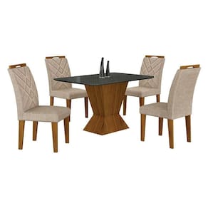 Mesa de Jantar Larissa 120x80 Freijó Chumbo com 4 Cadeiras MDF Freijó Linho Palha - Leifer Móveis