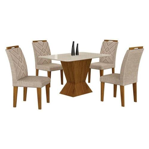 Mesa de Jantar Larissa 120x80 Freijó Off White com 6 Cadeiras MDF Freijó Linho Palha - Leifer Móveis