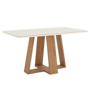 Mesa de Jantar Lins 160cm Canto Arredondado com Vidro Nature Off White com 6 Cadeiras Bella Amêndoa - Henn