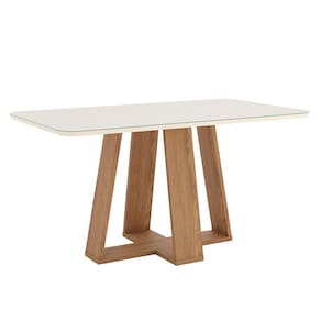 Mesa de Jantar Lins 160cm Canto Arredondado com Vidro Nature Off White com 6 Cadeiras Bella Linho - Henn