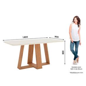 Mesa de Jantar Lins 180 cm Canto Arredondado com Vidro Nature Off White – Henn