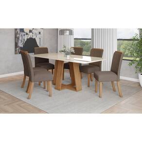 Mesa de Jantar Lins 06 Lugares 2.000mm Tampo canto arredondado com vidro.   Cadeira Malu:  Densidade da espuma do Assento: D18. Densidade da espuma do Encosto: D15.    Medidas; Mesa: A: 800 x L: 2000 x P: 900 mm Cadeira: A: 980 x L: 440 x P: 600 mm   Grantia: 90 dias.     Recomendação de limpeza: Usa pano levemente umedecido com água, seguido por pano seco. Evitar exposição ao sol, para aumentar a durabilidade da cor do tecido. Não usar escova e/ou produtos abrasivos.    Montagem: Montagem, desmontagem e outras instalações serão de responsabilidade do cliente. Não nos responsabilizamos, no ato da entrega, por subir escadas/elevadores ou pelo transporte por guincho em apartamentos. Eventuais despesas são de responsabilidade do comprador;     Observações importantes: A tonalidade da cor do produto pode variar de acordo com a sua tela, a iluminação do ambiente ou sua percepção visual Lembrando que são fotos ilustrativas tratadas em estúdios podendo haver pequena diferença nas cores A montagem será de responsabilidade do comprador; Não nos responsabilizamos, no ato da entrega, por subir escadas/elevadores ou transporte por guincho em apartamentos. Eventuais despesas são de responsabilidade do comprador; Confira as dimensões deste produto e certifique-se de que passará normalmente por supostos elevadores, portas, escadas e/ou corredores de sua residência; Para mais informações, acesse nossa Central de Atendimento.
